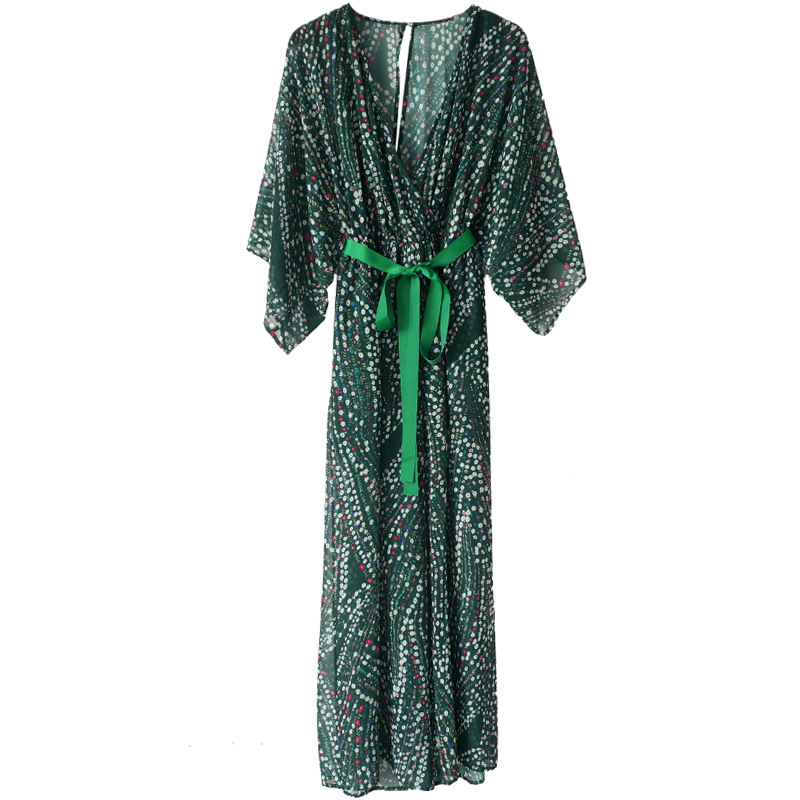 氣質時尚印花連體褲2018夏季新款V領高腰系帶顯瘦顯高闊腿長褲女