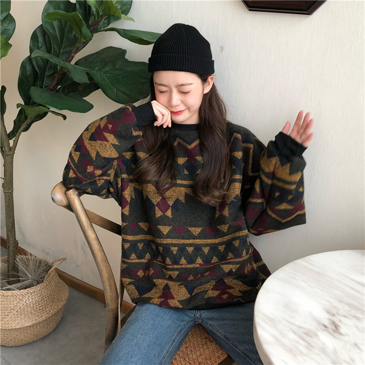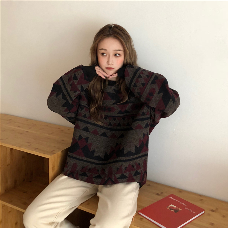 / 2018新款秋冬韓版慵懶風寬松撞色加厚呢料套頭超火衛衣上衣外套女