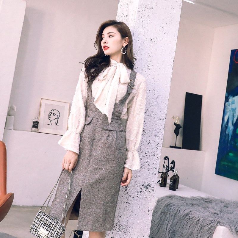 / 秋季套裝裙女2018新款韓版長袖上衣背帶連衣裙顯瘦氣質裙子兩件套