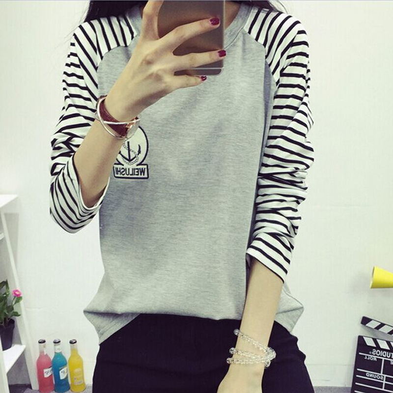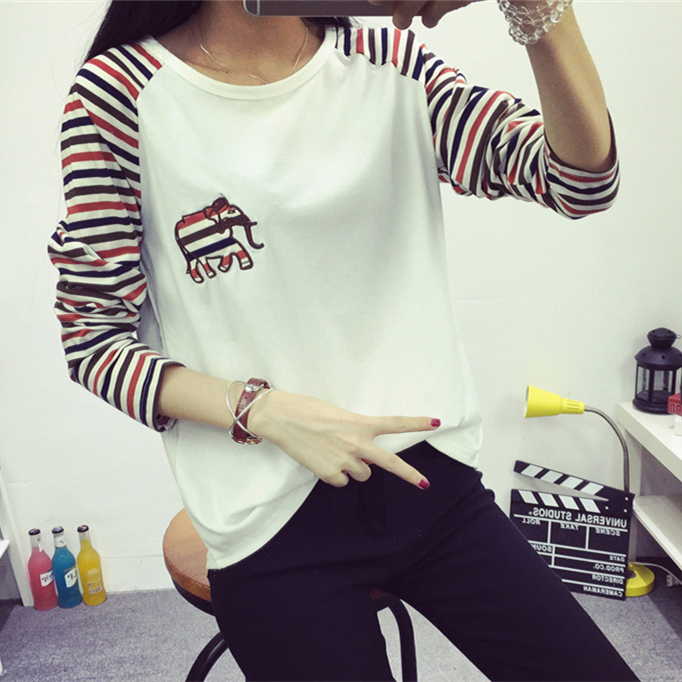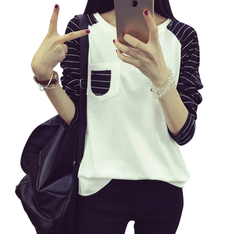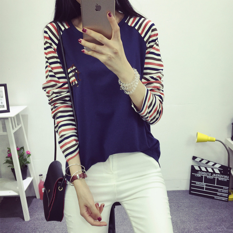 夏季寬松新款上衣女學生春秋季套頭小衫條紋長袖T恤女顯瘦體恤