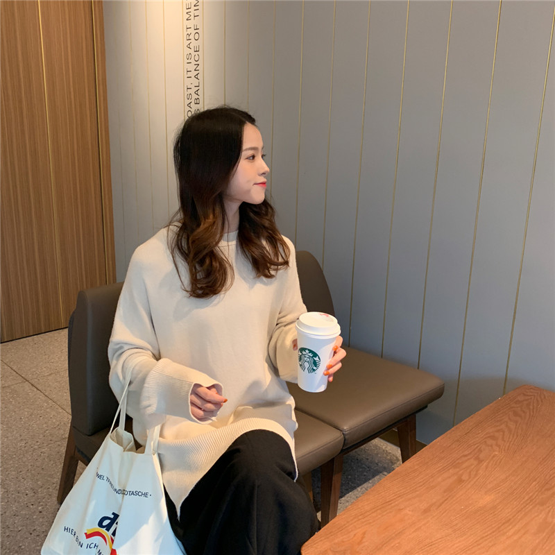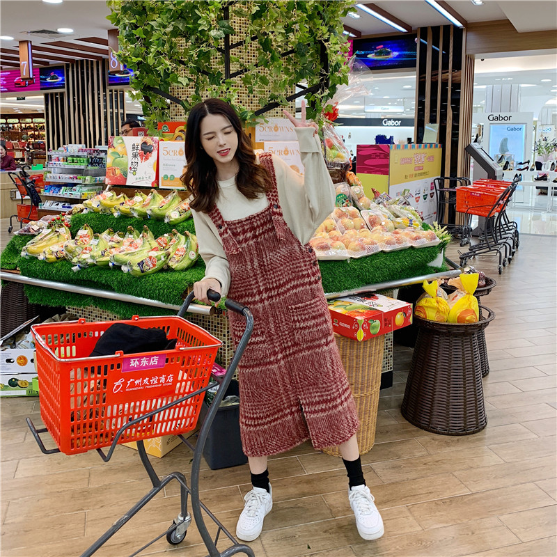 / 韓版時尚休閑套裝秋季女裝開叉毛呢背帶裙+加厚打底針織衫兩件套