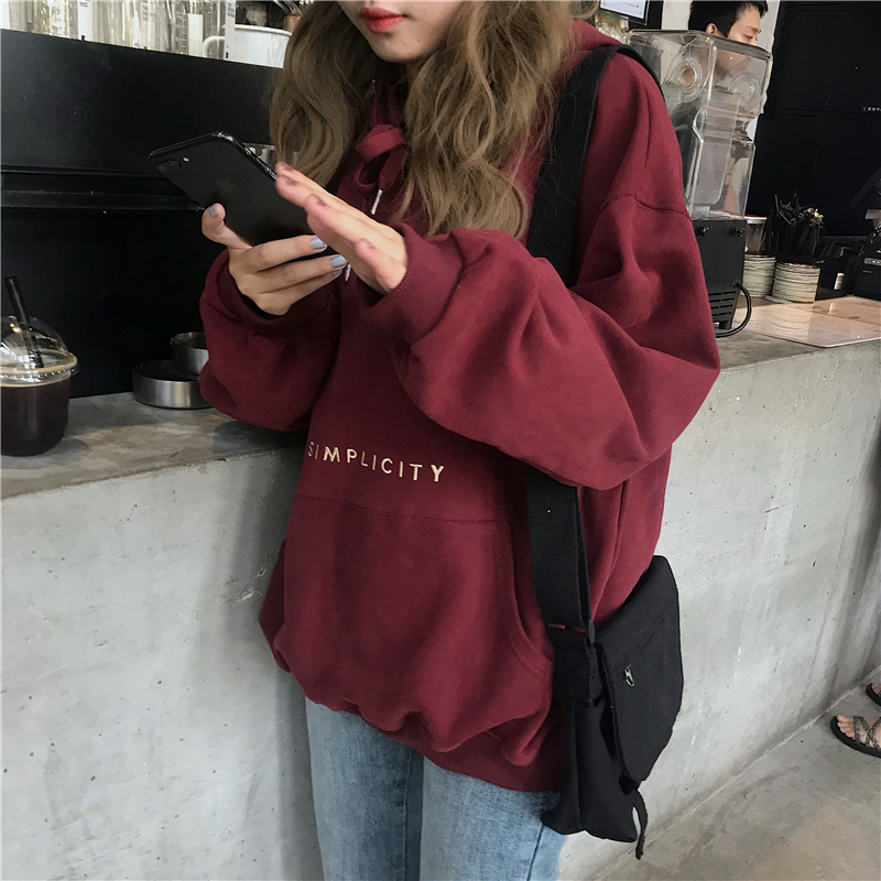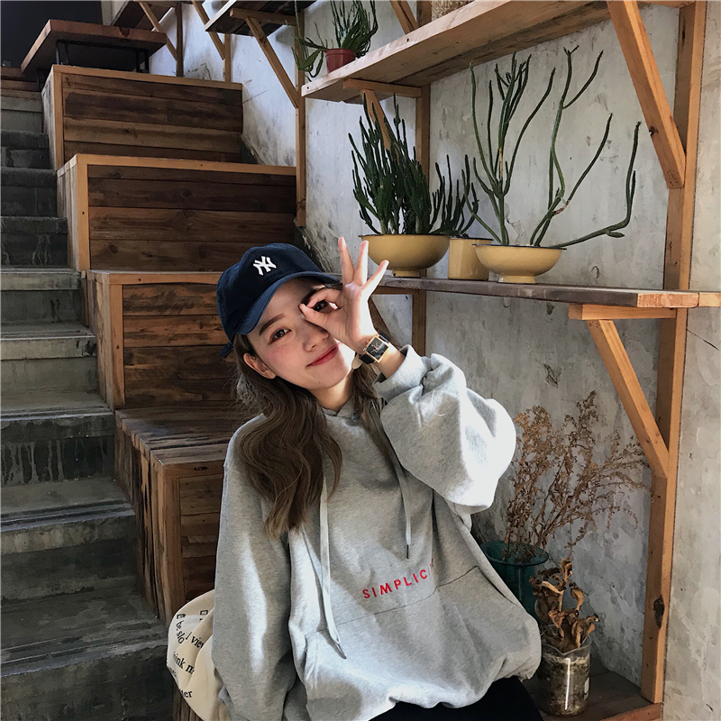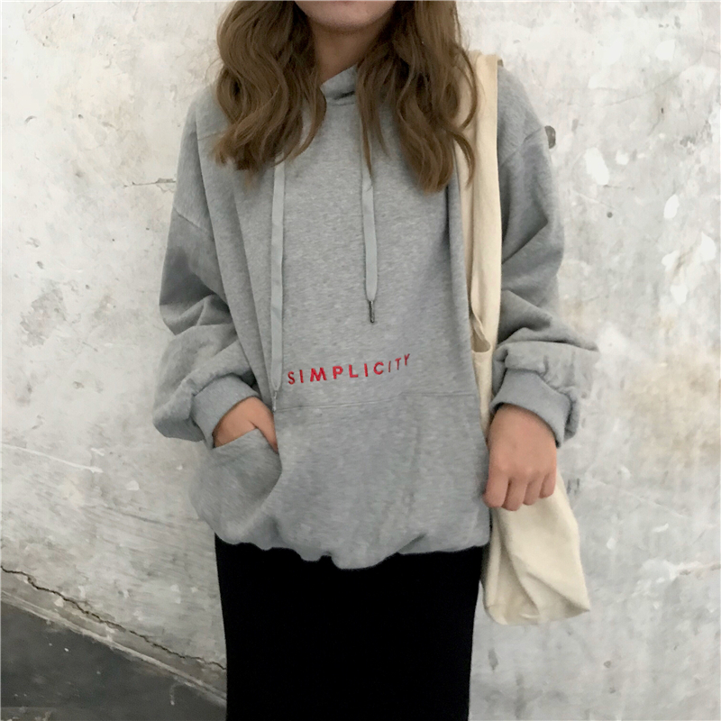 / 秋冬韓版中長款字母刺繡寬松抓絨加厚連帽套頭超火衛衣上衣外套女
