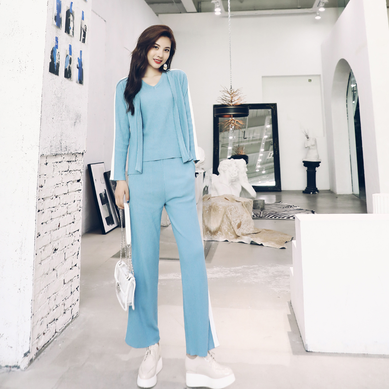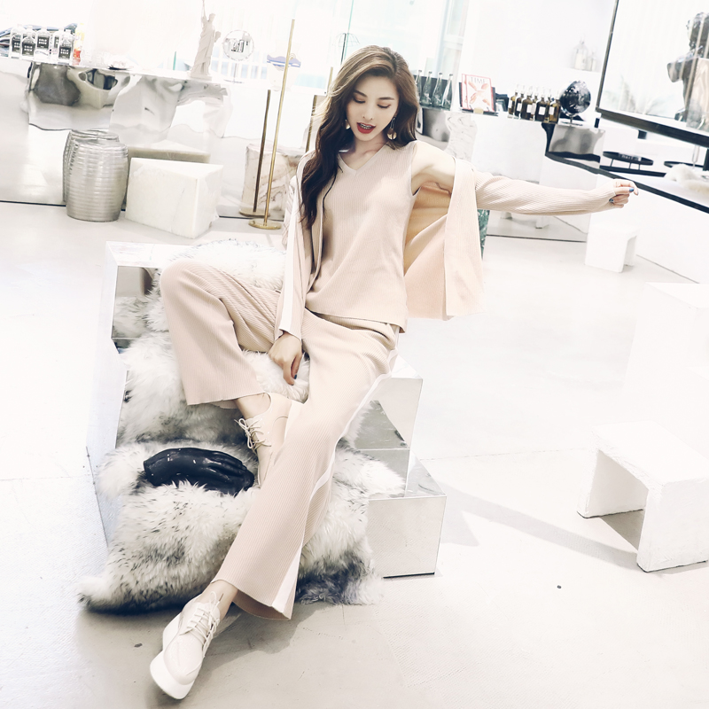 / 名媛氣質2018春秋裝新款韓版背心針織開衫闊腿褲時尚氣質三件套裝