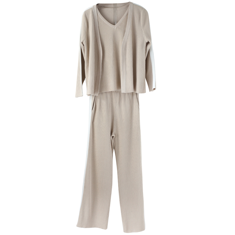名媛氣質2018春秋裝新款韓版背心針織開衫闊腿褲時尚氣質三件套裝